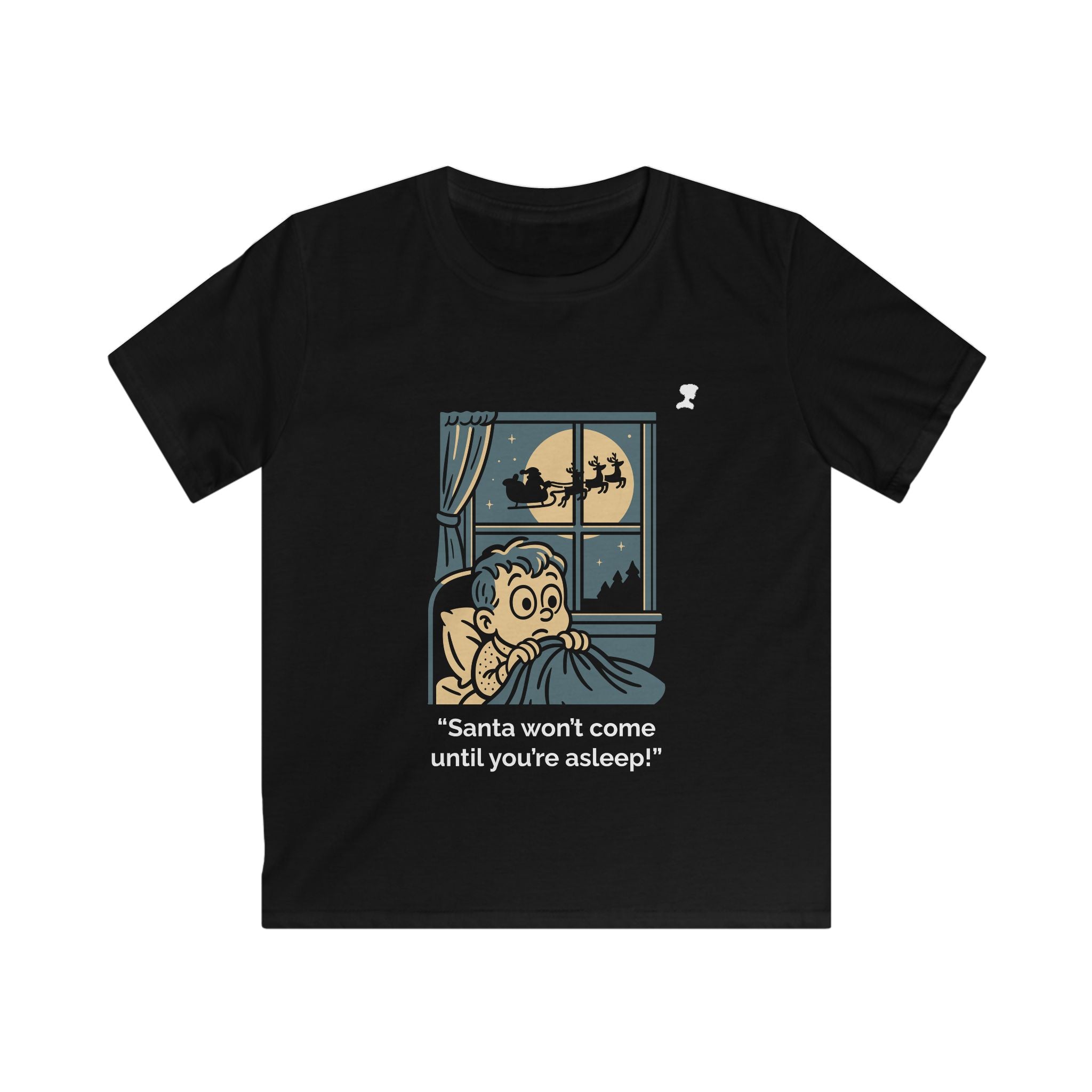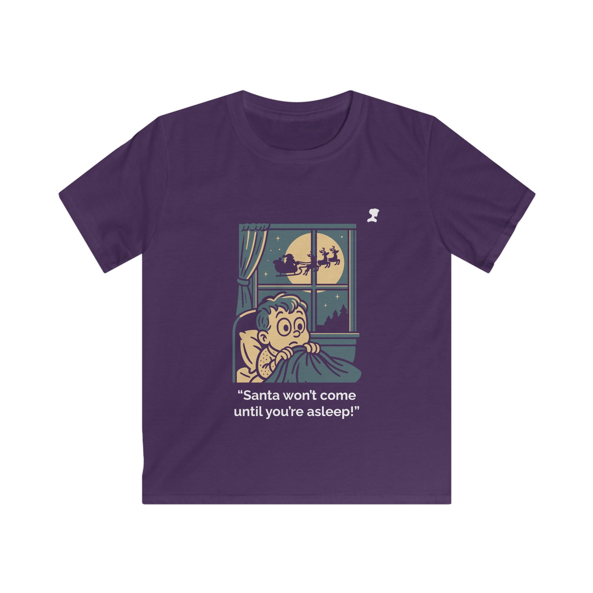 My Mama Said™ “Santa Won’t Come Until You’re Asleep!” Kids Tee | Cozy Retro Christmas-Eve Graphic Shirt