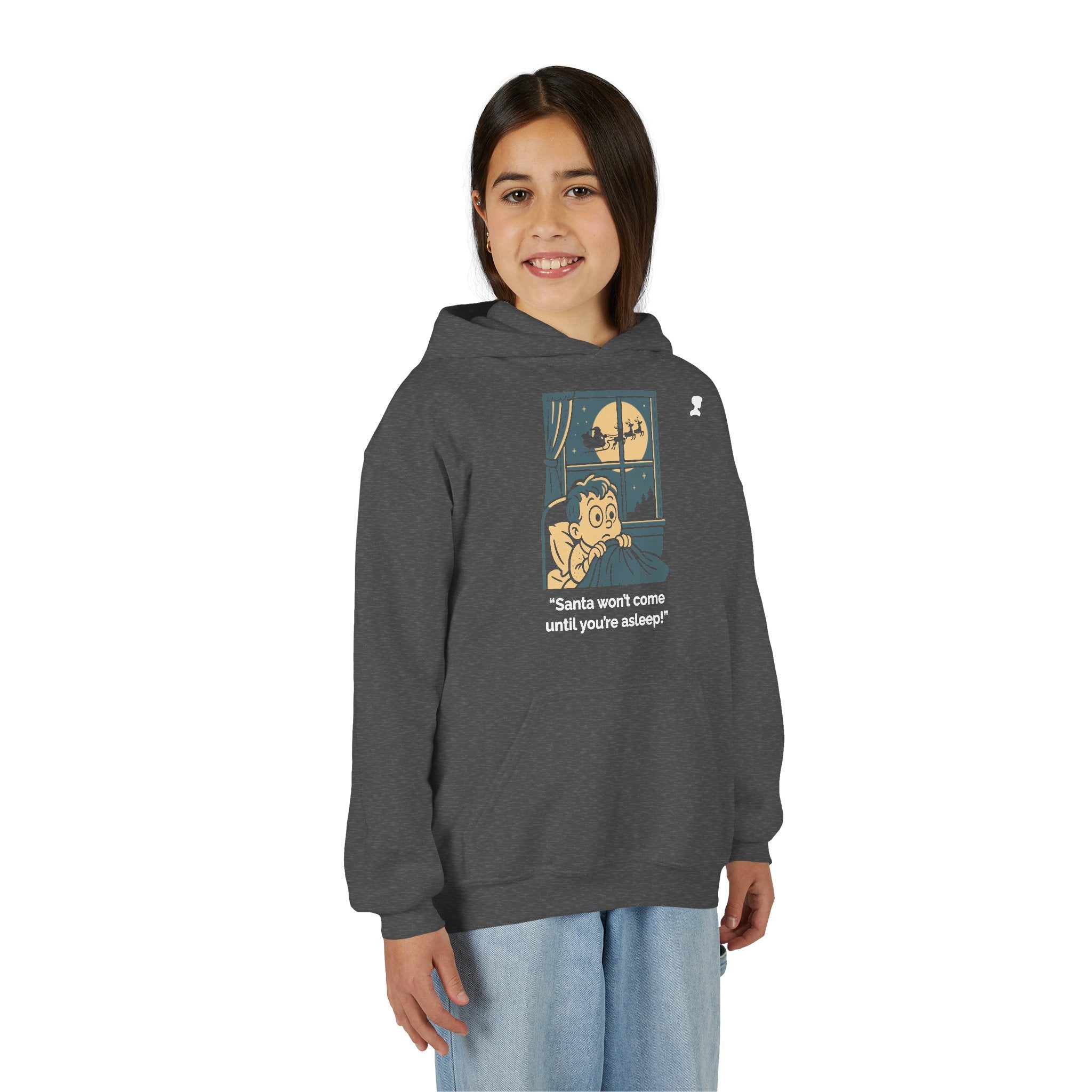 My Mama Said™ “Santa Won’t Come Until You’re Asleep!” Kids Hoodie | Warm & Whimsical Retro Christmas Graphic Hoodie