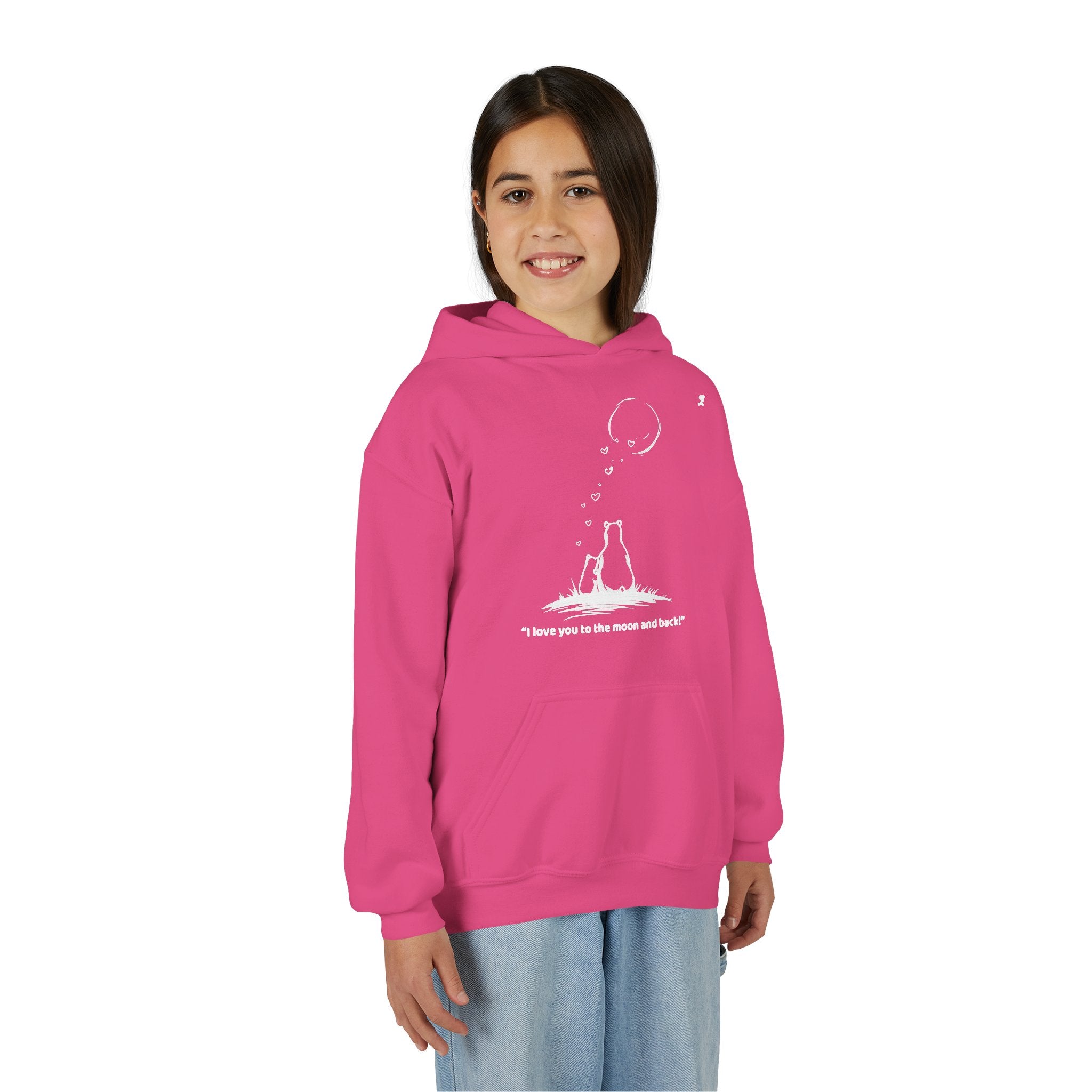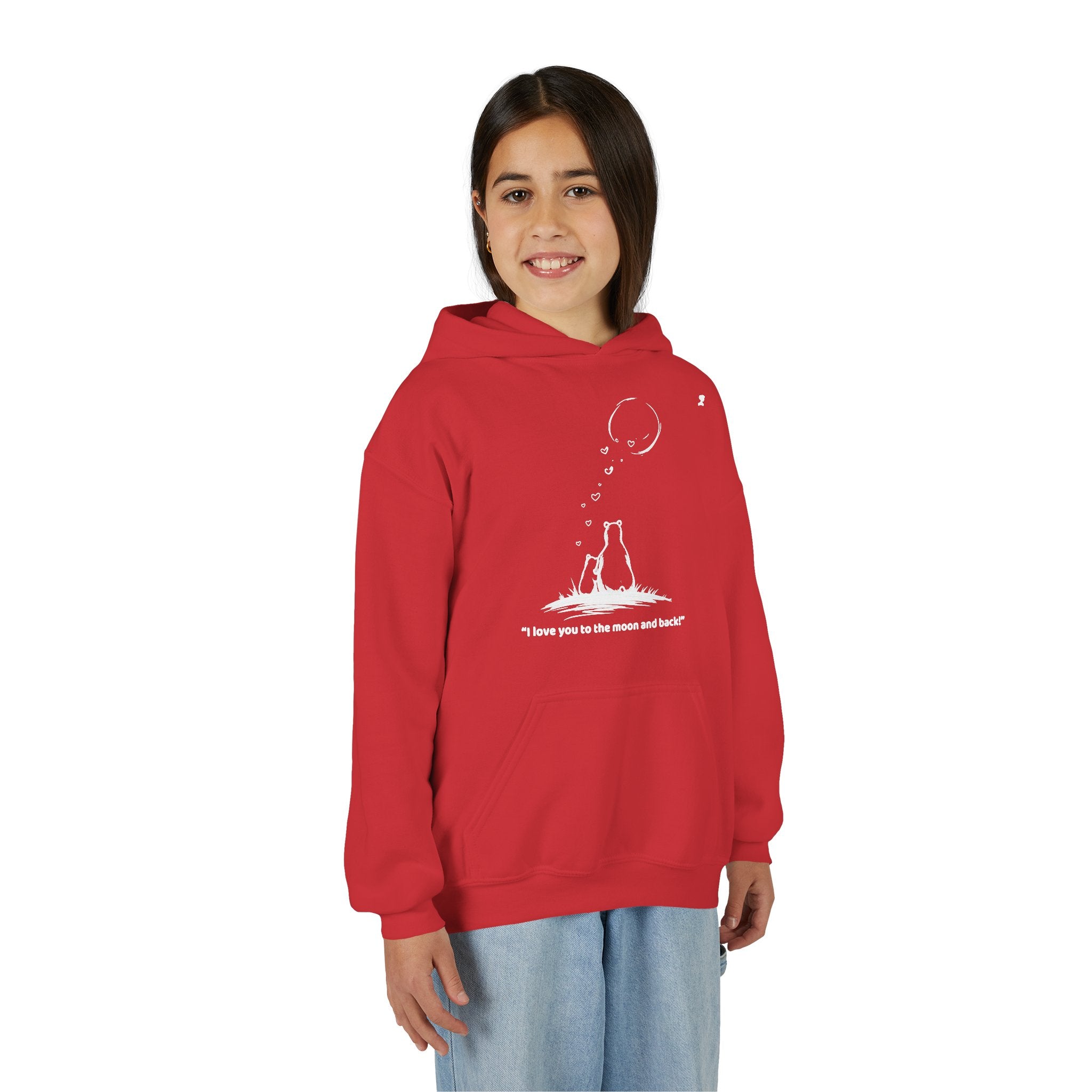 My Mama Said™ “I Love You to the Moon and Back” Youth Hoodie | Cozy Bear & Moon Graphic Sweatshirt