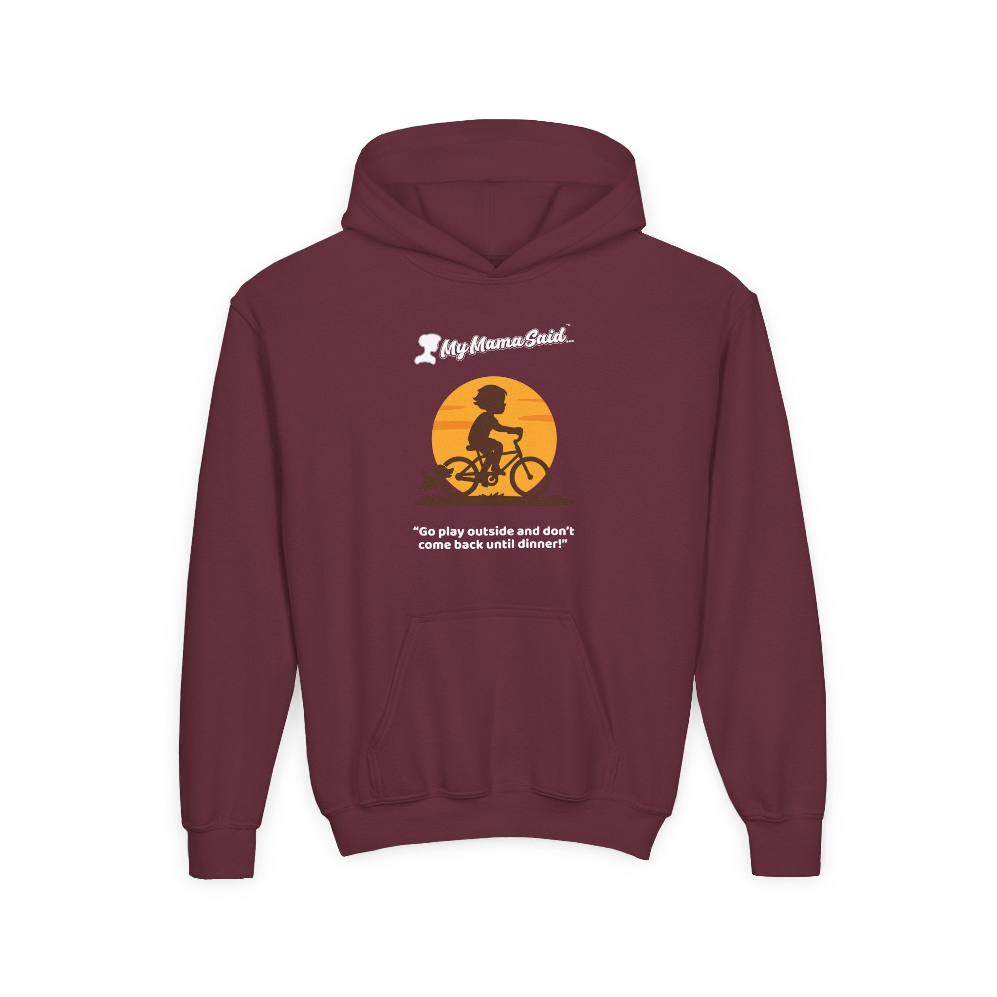 My Mama Said™ “Go Play Outside and Don’t Come Back Until Dinner!” Kids Hoodie | Cozy Retro Outdoor-Play Graphic Hoodie