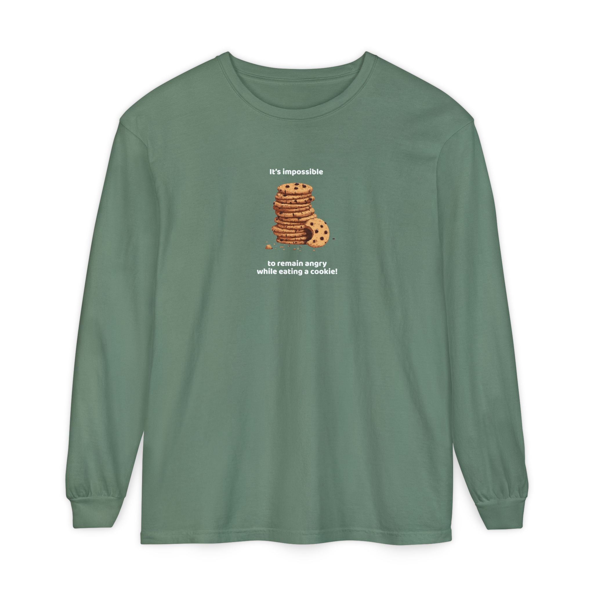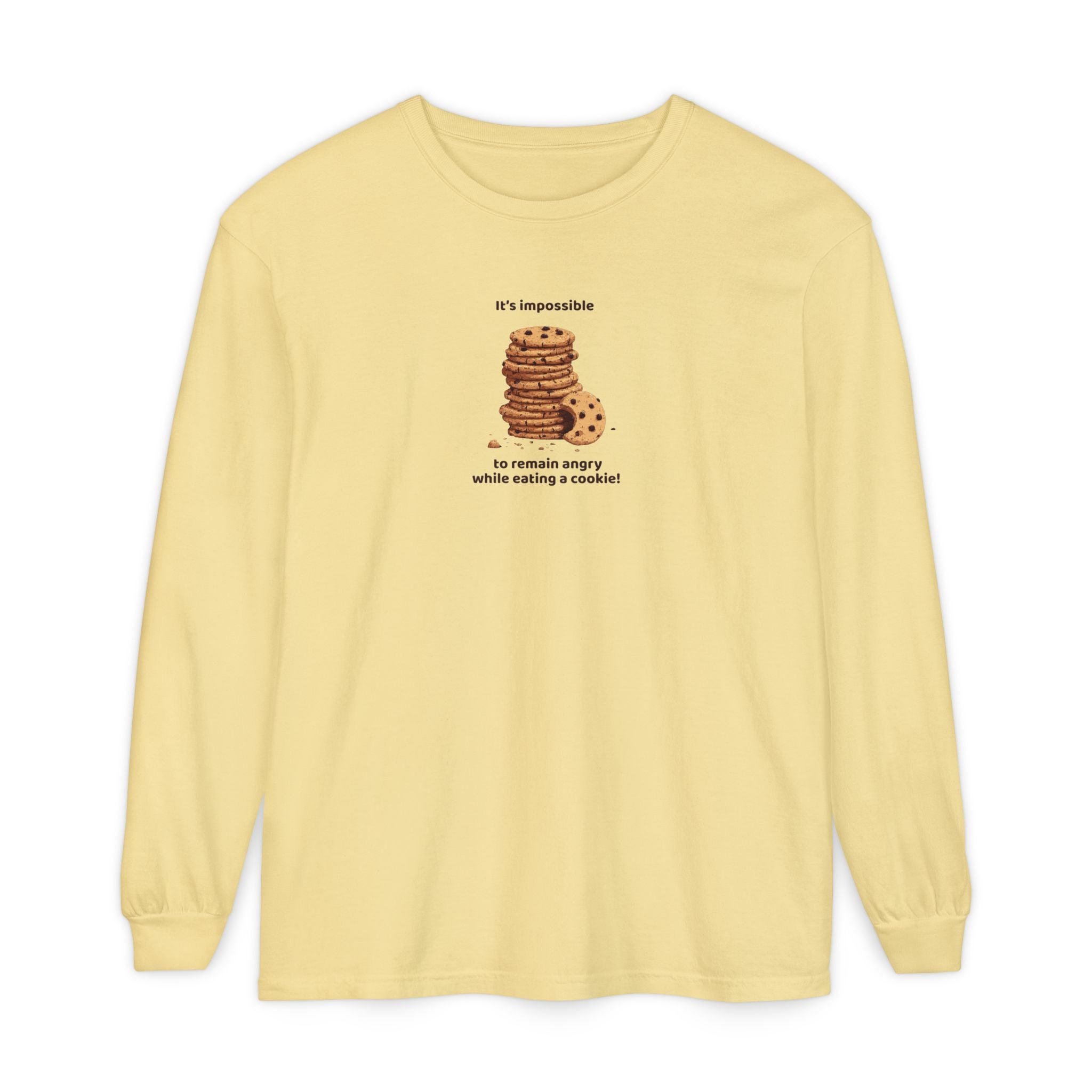 My Mama Said™ “It’s Impossible to Remain Angry While Eating a Cookie.” Comfort Colors® Long Sleeve Tee — Cookie Edition, Garment-Dyed, Premium Weight, Unisex Fit