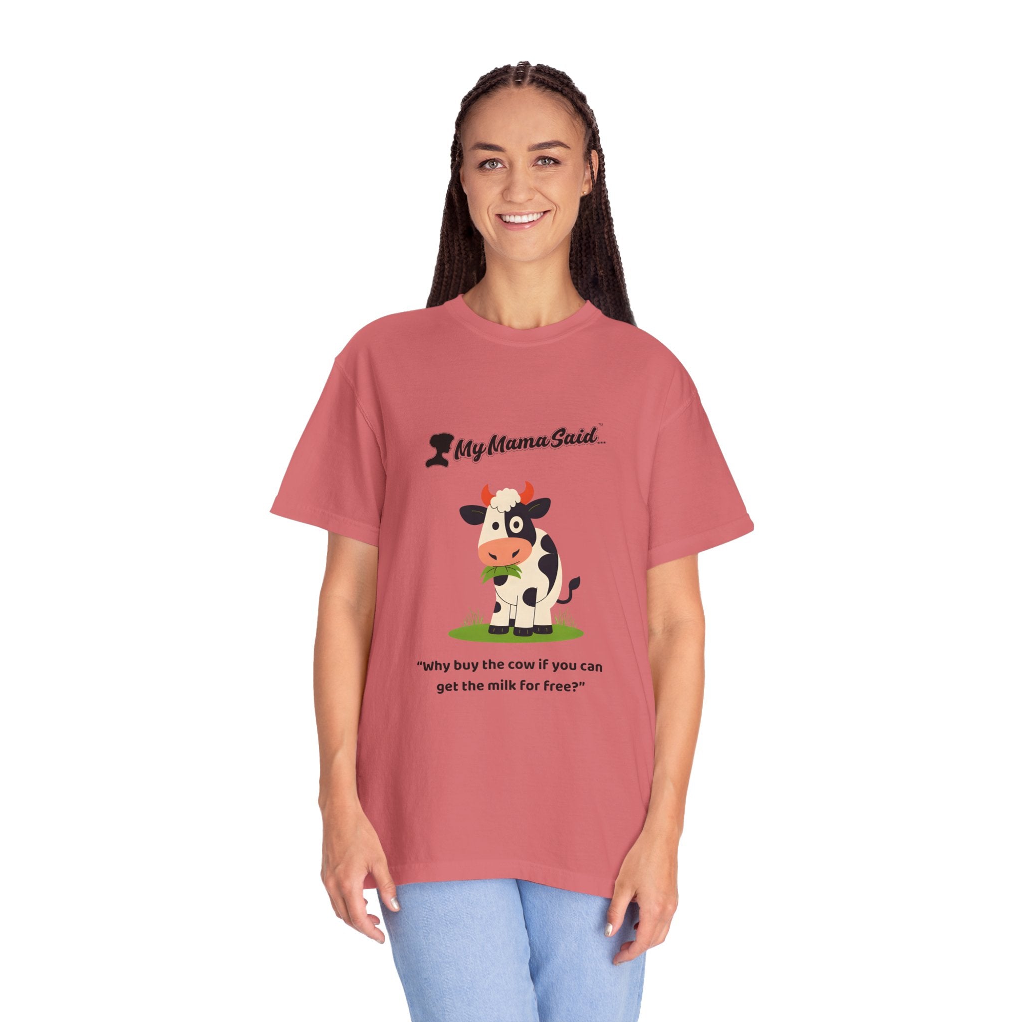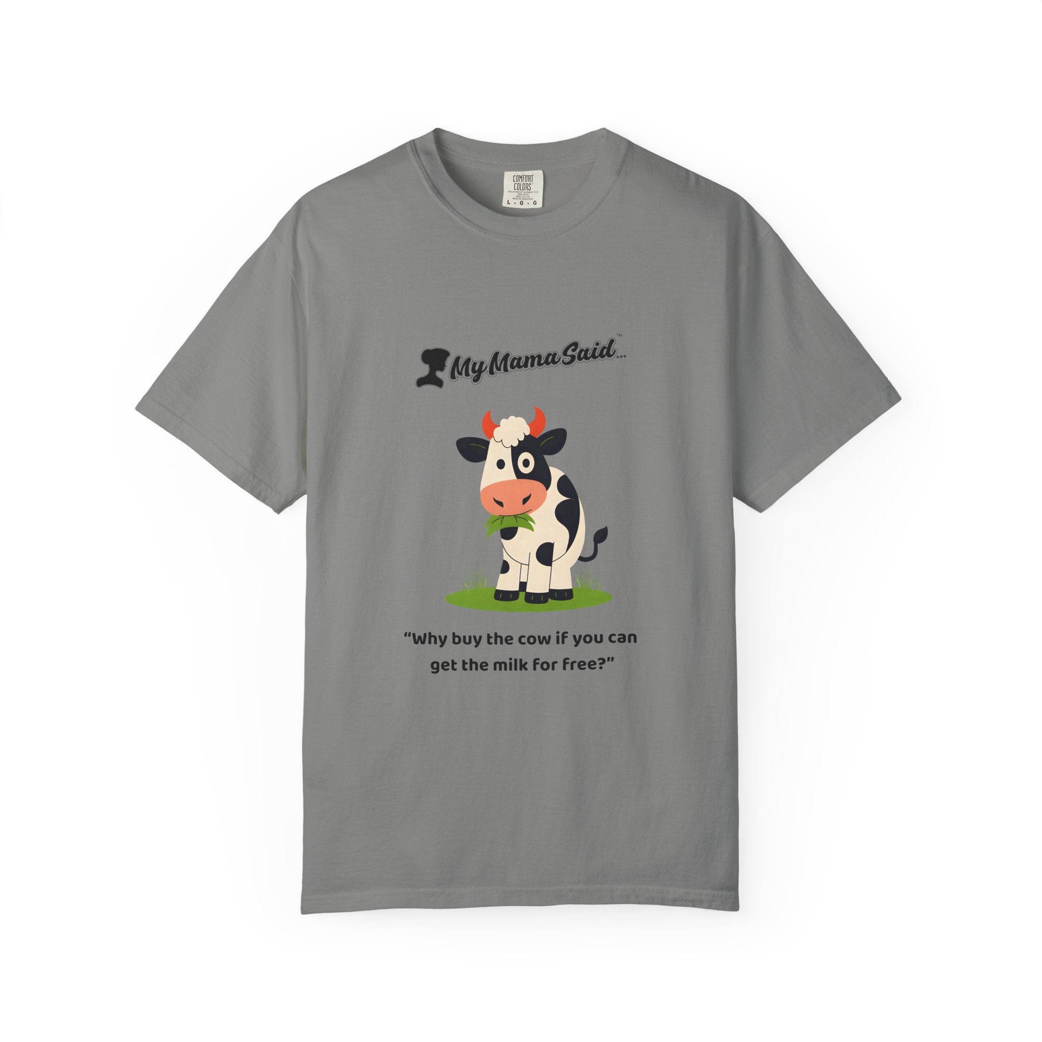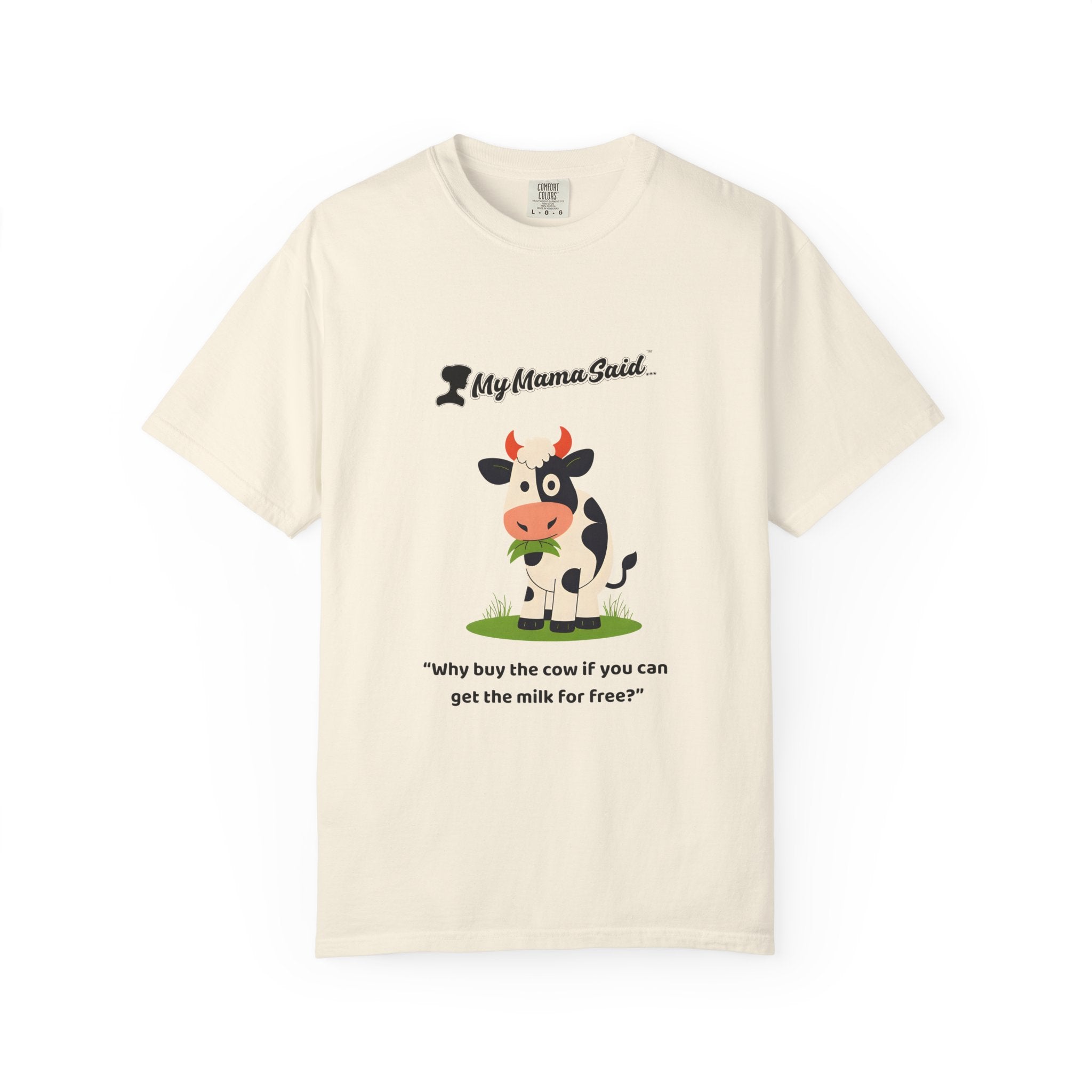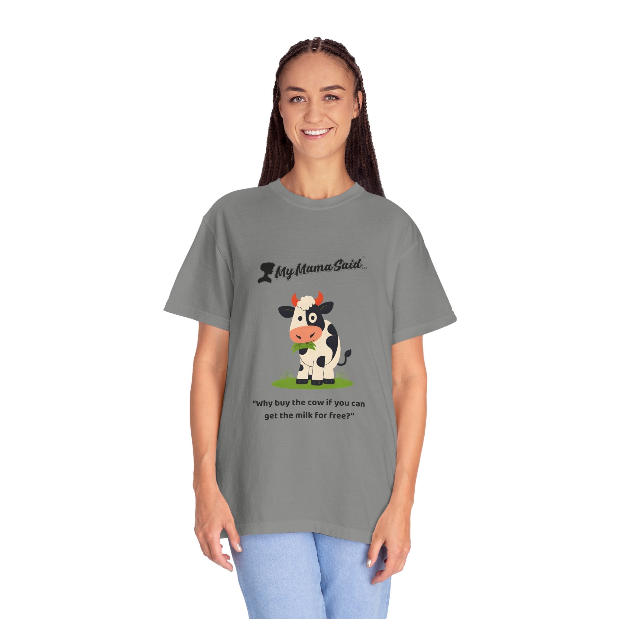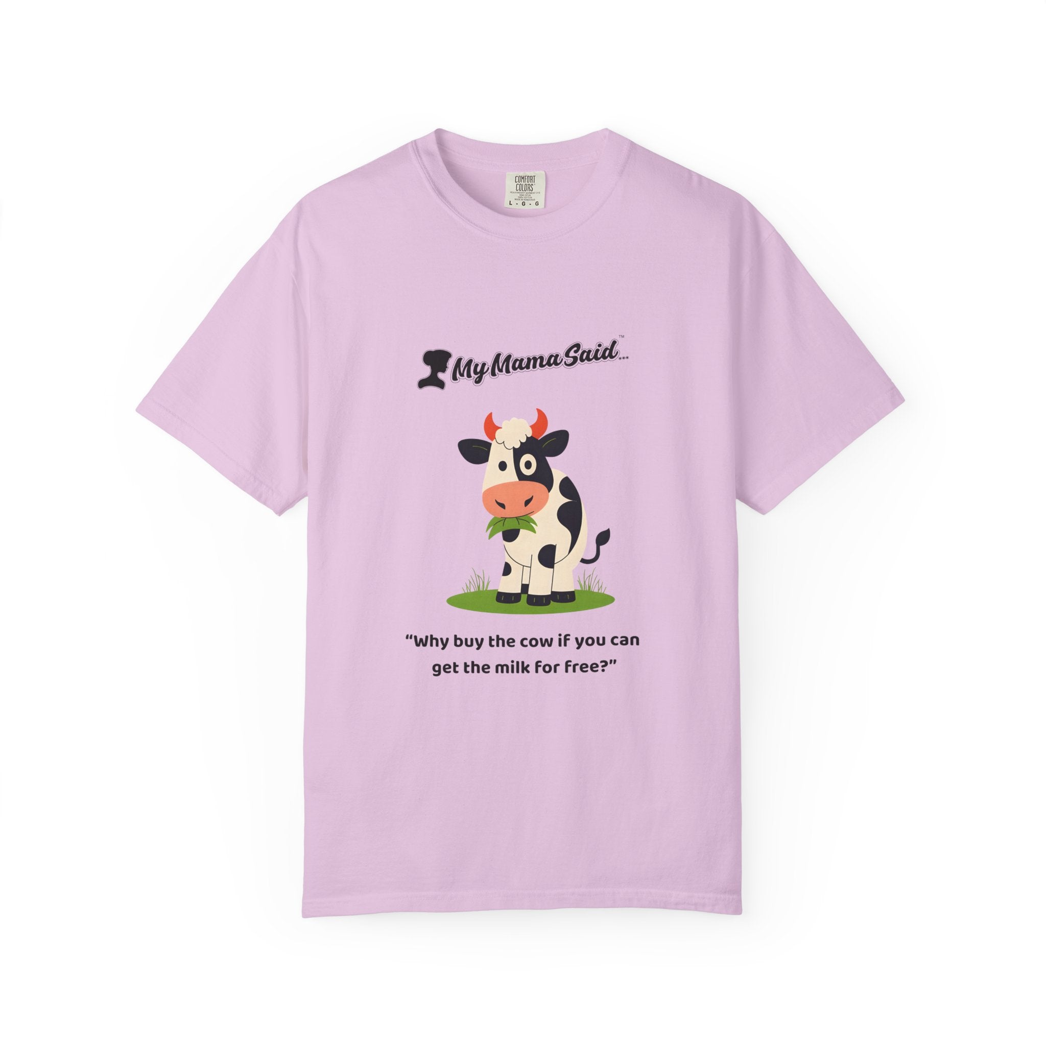 My Mama Said™ “Why Buy the Cow?” Funny Women’s Graphic Tee – Cute Cow Design, Comfort Colors Unisex Fit