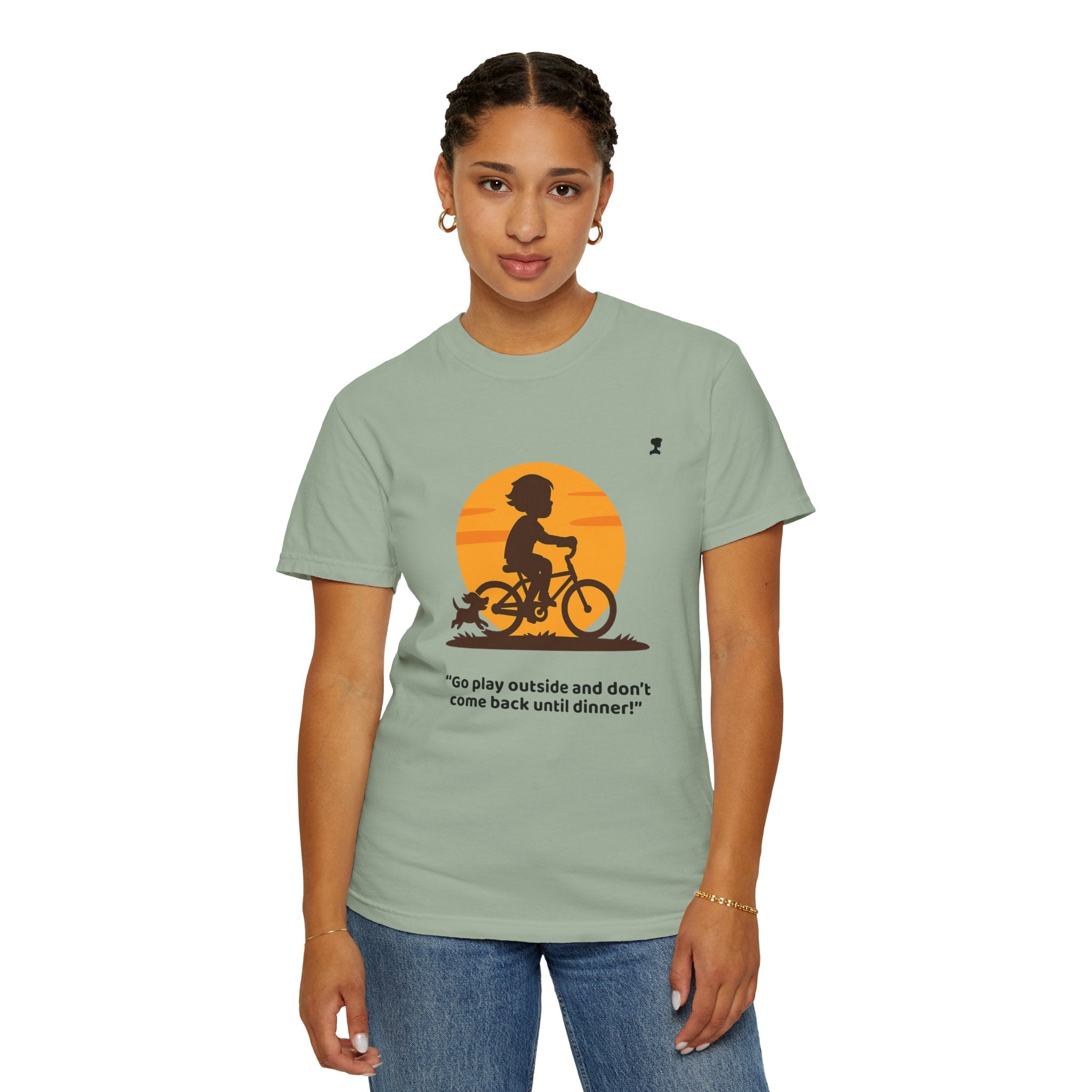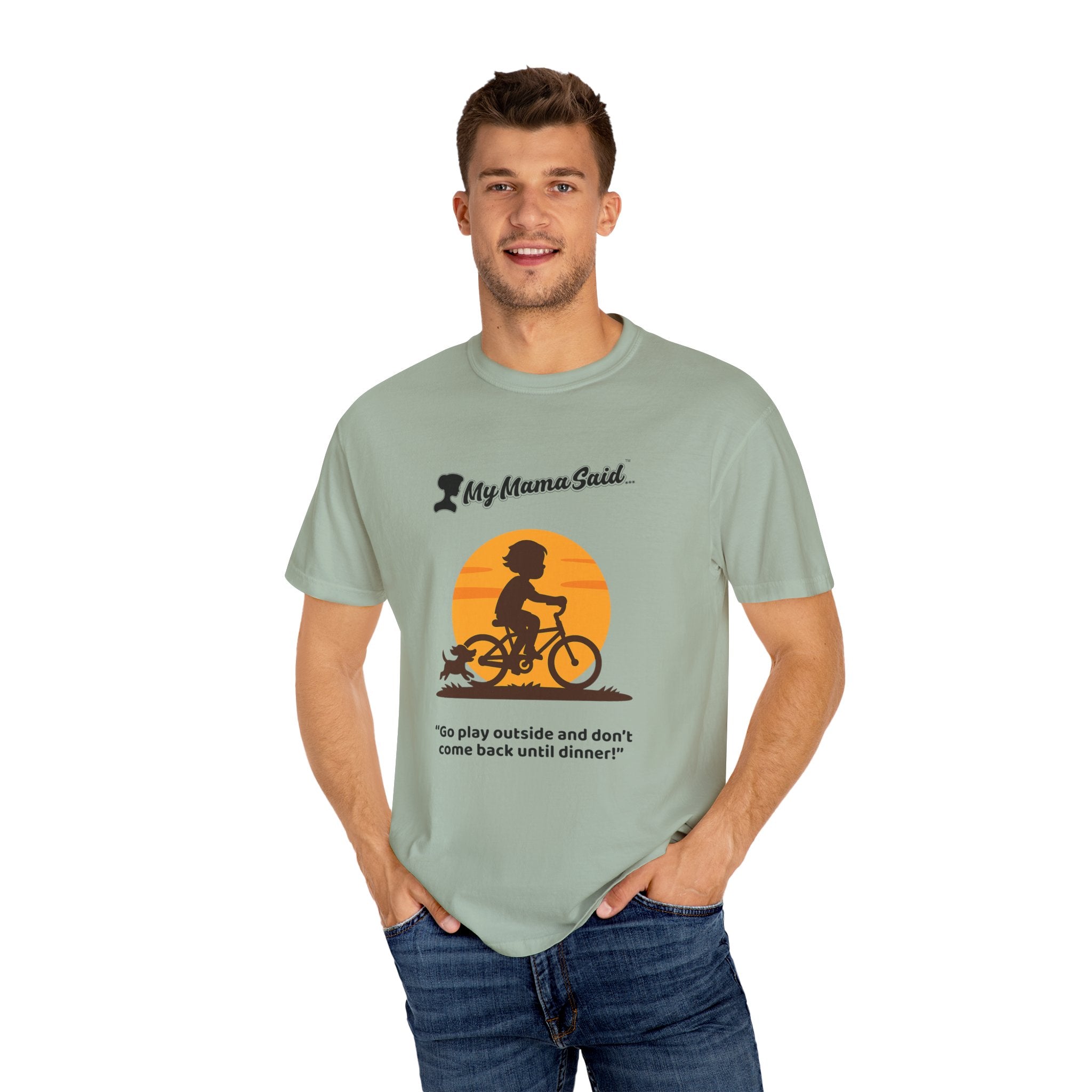 Channel that classic “’til the streetlights come on” childhood freedom. Our My Mama Said… “Go play outside and don’t come back until dinner!” unisex tee captures the nostalgia of sunny afternoons, bike rides, and loyal dogs chasing behind — all in one super-soft, vintage-feel shirt.