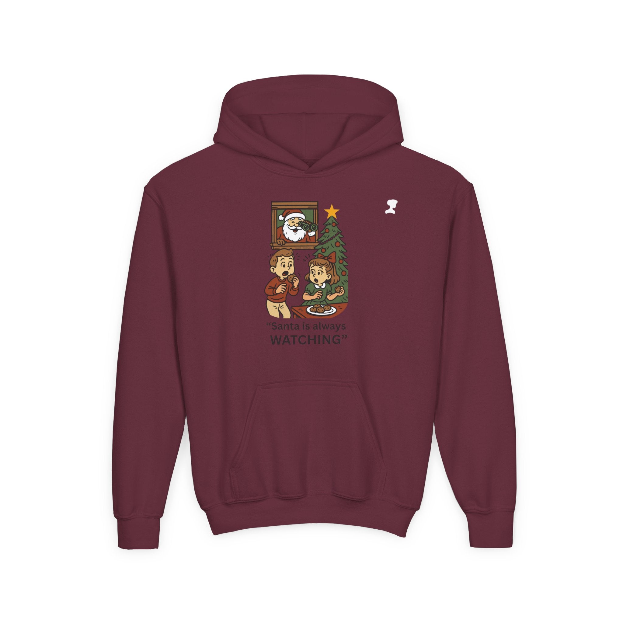 Featuring the same charming vintage illustration and the iconic phrase “Santa is always WATCHING,” this hoodie turns classic holiday nostalgia into wearable fun.