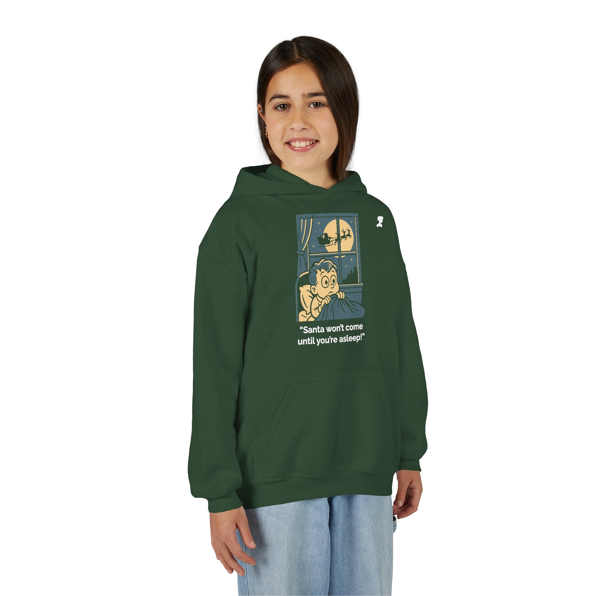 My Mama Said™ “Santa Won’t Come Until You’re Asleep!” Kids Hoodie | Warm & Whimsical Retro Christmas Graphic Hoodie