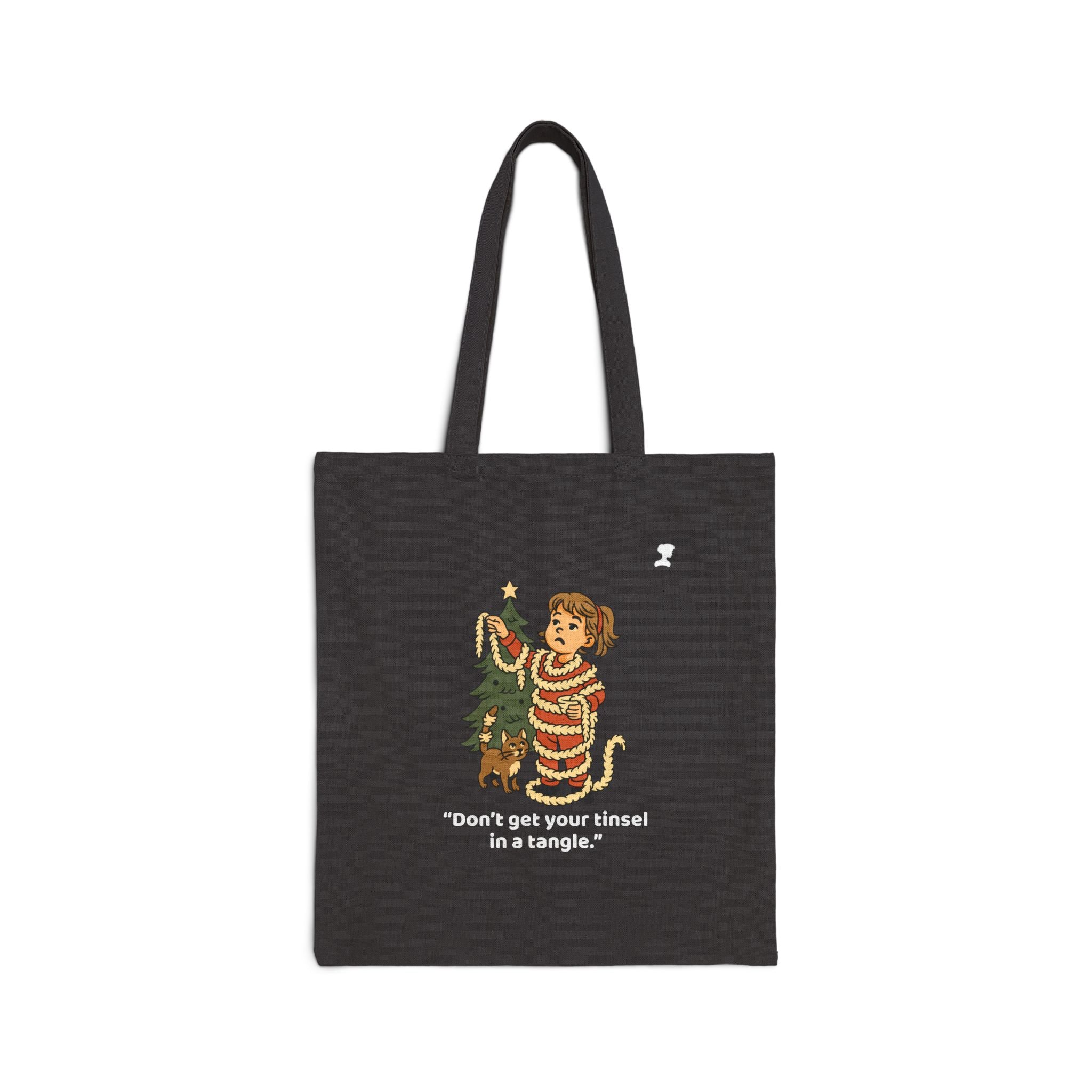“My Mama Said… Don’t Get Your Tinsel in a Tangle” Holiday Canvas Tote (Black)