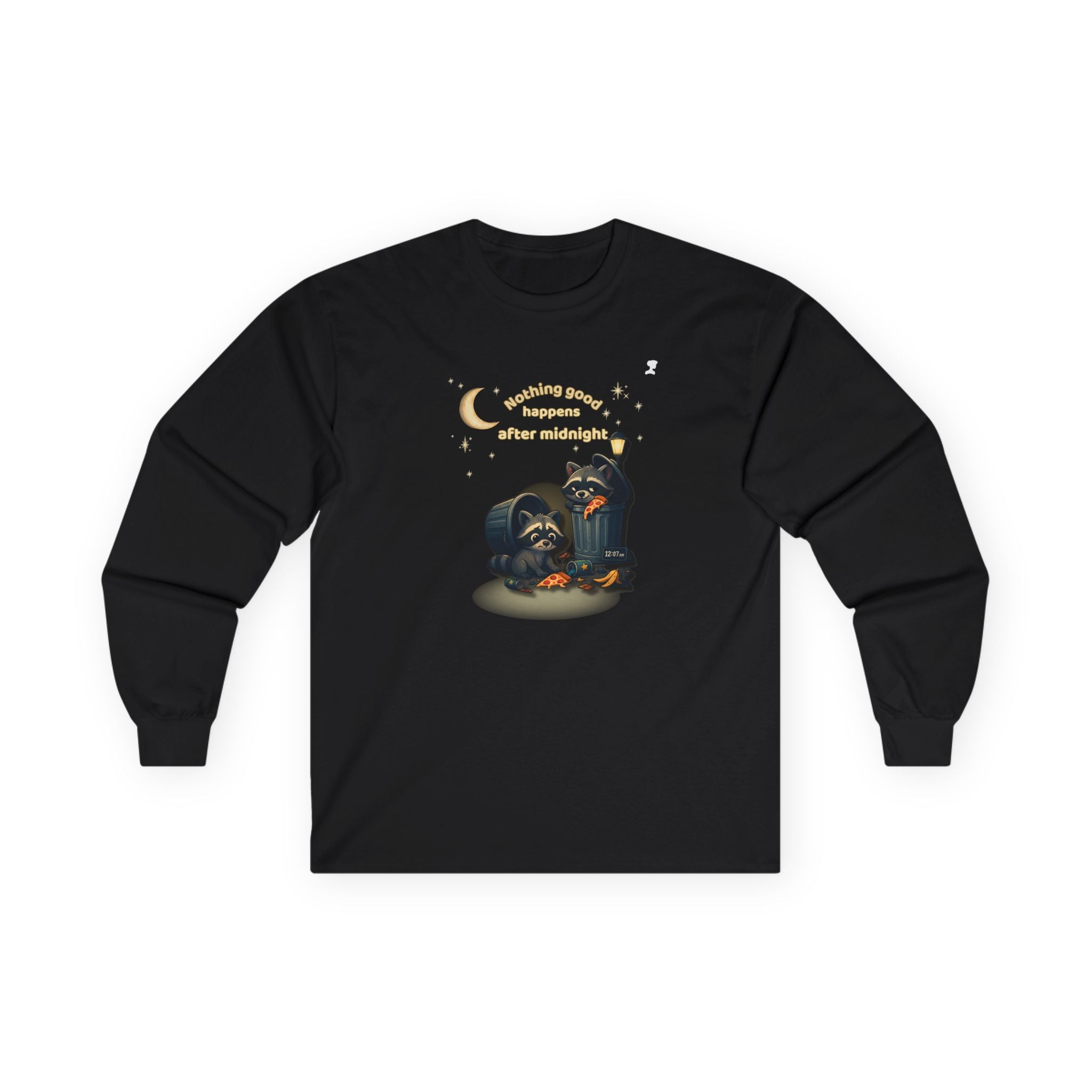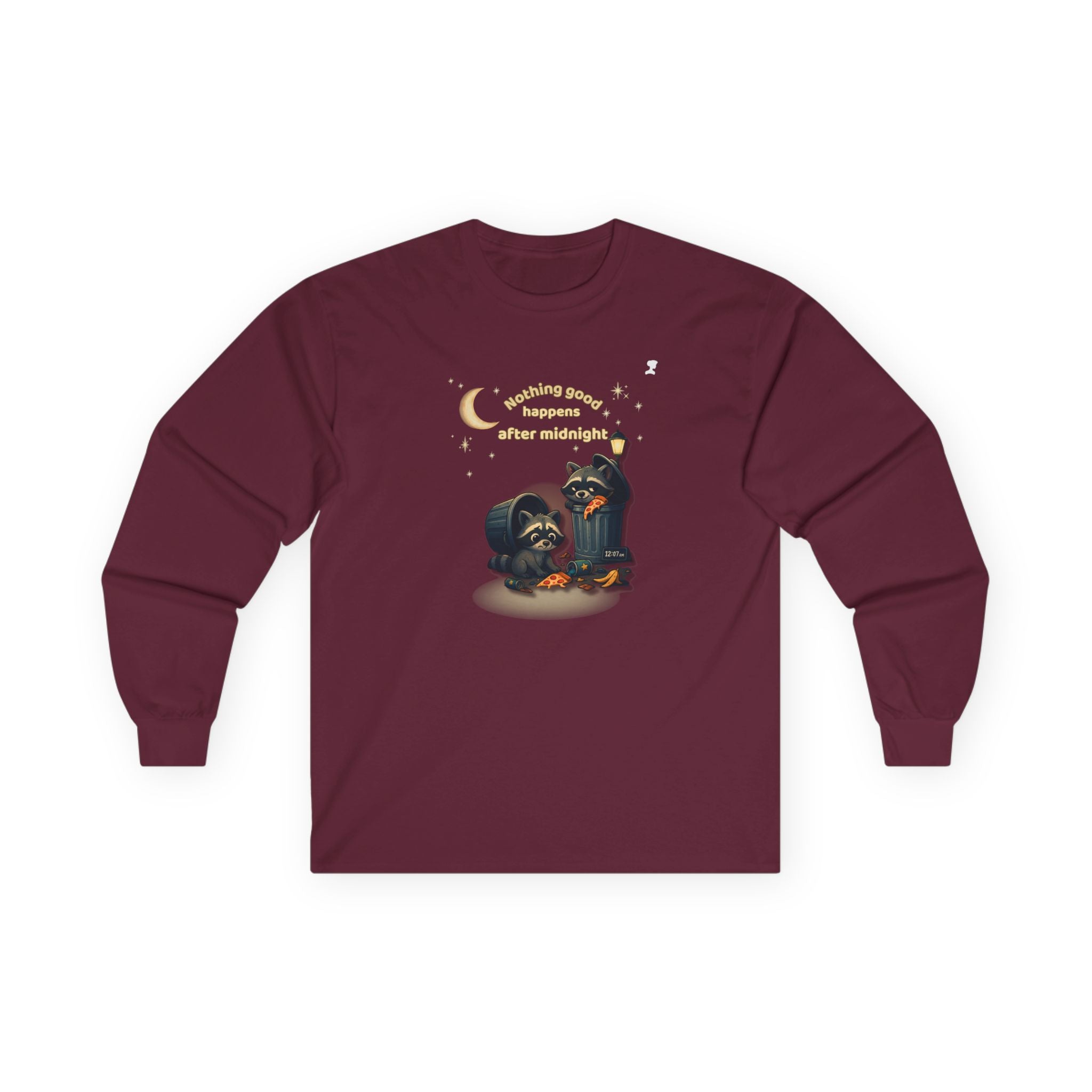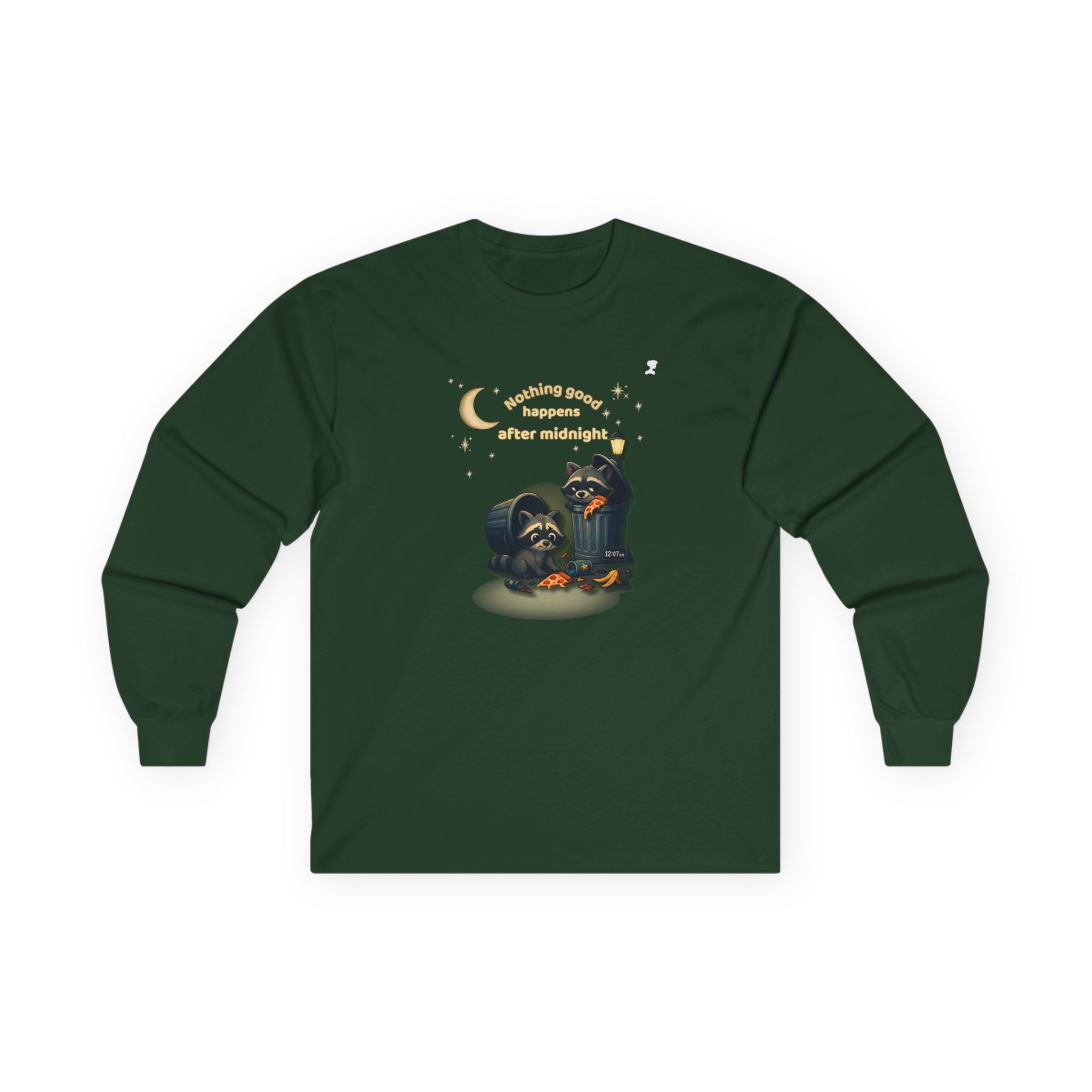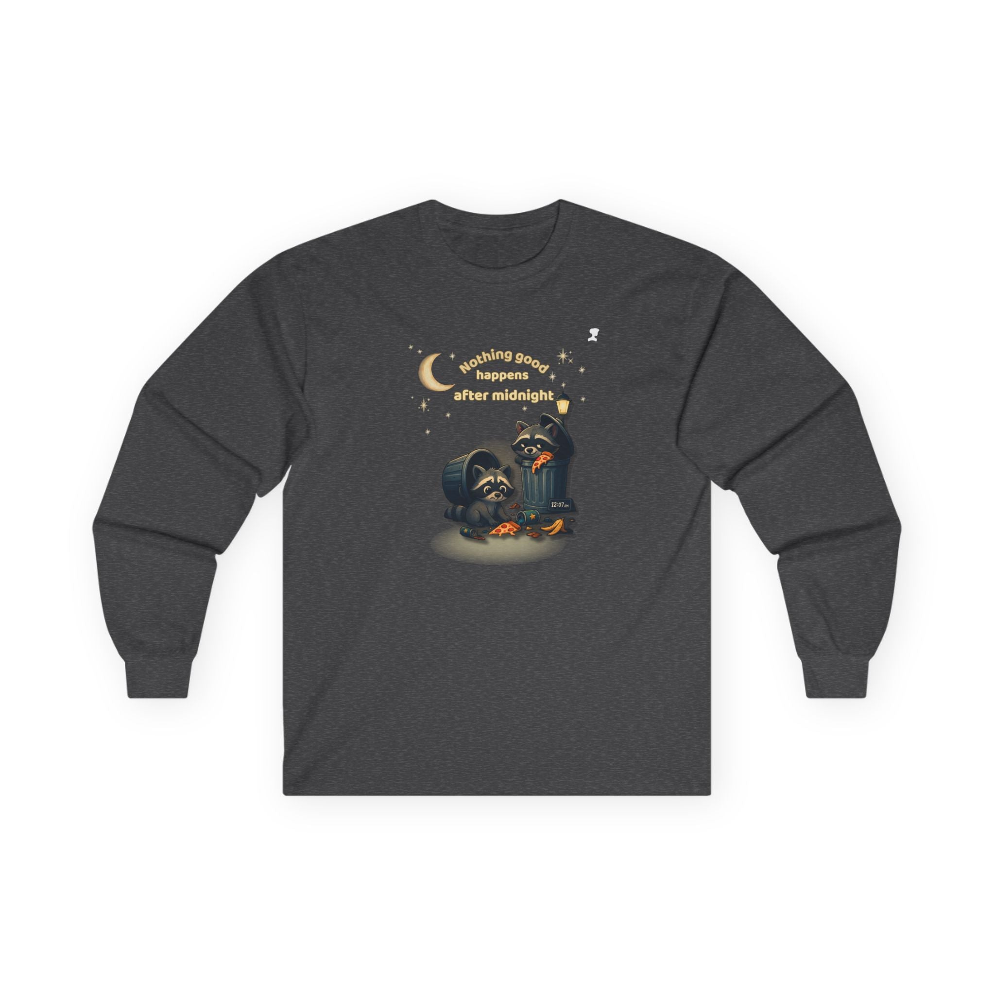 My Mama Said – Nothing Good Happens After Midnight Funny Raccoon Long Sleeve Tee • Midnight Mischief Shirt • Cozy Unisex Graphic Top